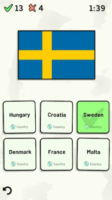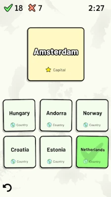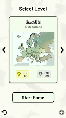 Standard quizzes allow you to learn each topic by progressing through a series of levels, each covering additional countries.