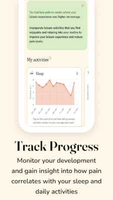 Improve self-management: Track and reflect on how daily activities impact your pain levels, uncover triggers and protective factors, and focus on the activities that matter most to you.