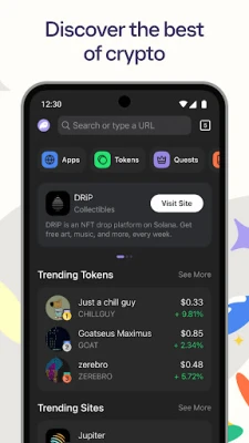 - Use your favorite Solana and Ethereum dapps in our browser